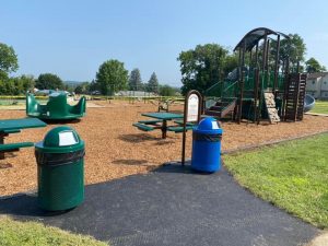 Lenape Park has a playground, ball field, picnic tables and a shelter.